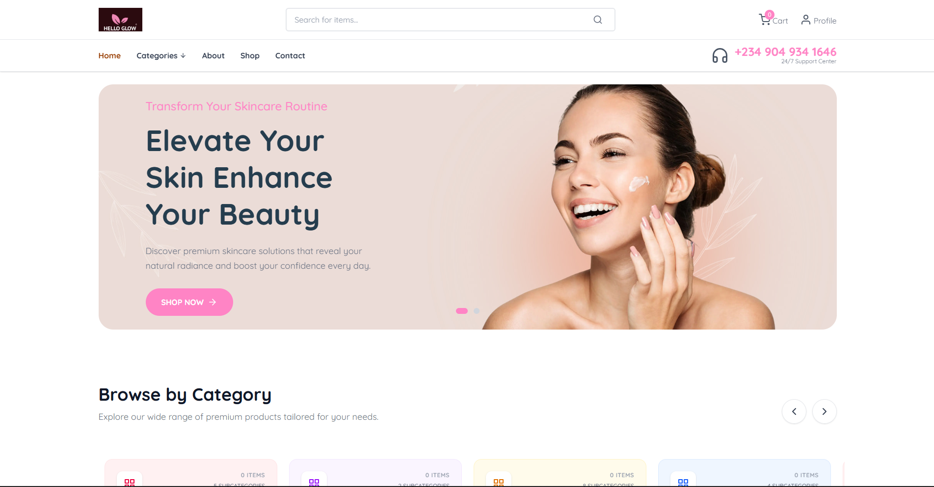 A comprehensive e-commerce platform, providing end-to-end solutions for online shopping for skin care products.